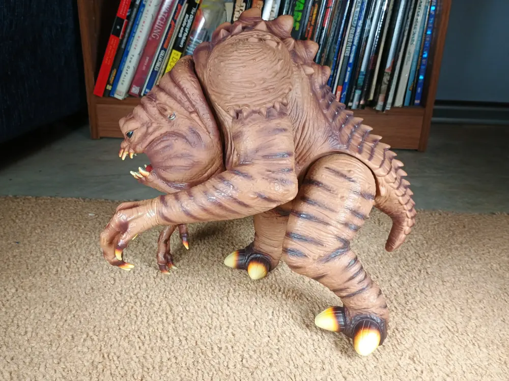 This is the big, beastly Rancor from the 1998 Power of the Force 2 line by Kenner/Hasbro. No box, no keeper — just the creature itself, ready to terrorize your Luke Skywalker figures (or whoever you’ve got on hand!).